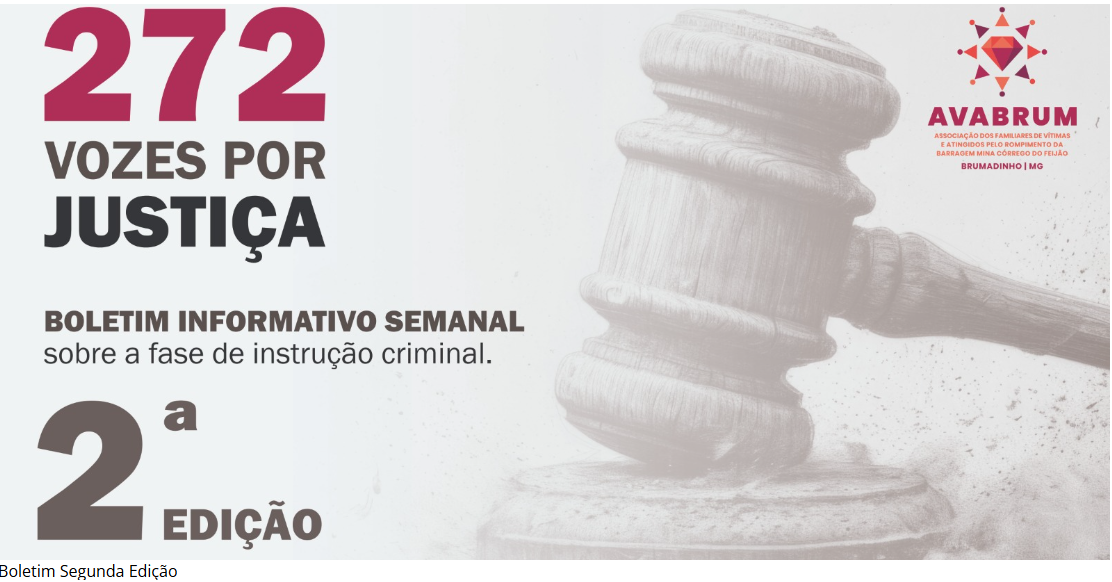 24 de fevereiro de 2026 Sessão inaugural, com depoimentos emocionantes dos familiares das vítimas, reuniu manifestações por justiça e evidenciou os impactos permanentes do rompimento da barragem que tirou 272 vidas. As audiências de instrução do processo criminal sobre o rompimento da barragem da Vale, na Mina Córrego do Feijão,