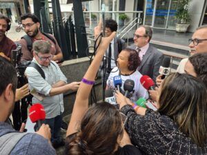 Logo nas primeiras horas da manhã, a portaria do TRF6 recebeu dezenas de familiares das vítimas que acompanharam o início das audiências. Com carro de som, palavras de ordem, gritos por justiça e músicas em homenagem às vítimas, o grupo transformou o espaço em um ato em memória das vítimas. Faixas e camisetas com fotos das 272 vidas interrompidas, reforçaram que, sete anos depois, a cobrança por responsabilização criminal permanece ativa.
